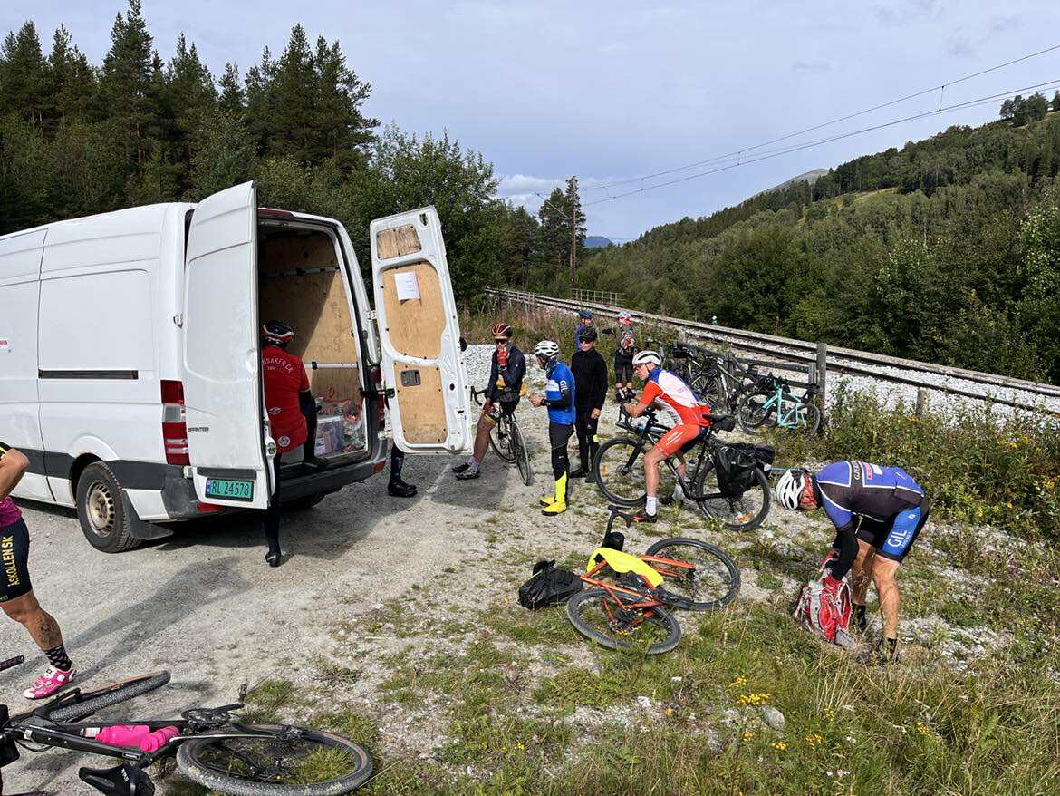 Alle må ha rekne med å ha på seg ein sekk eller ei sykkelveske på dagsetappene da det kan bli små mulighet for å treffe følgebil i løpet av dagen.